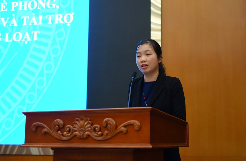 Bà Kiều Bạch Tuyết – Phó Trưởng phòng Tổng hợp, Cục Phòng, chống rửa tiền, Ngân hàng Nhà nước Việt Nam thông tin tổng quan pháp luật về lĩnh vực phòng, chống rửa tiền. Ảnh: Tuệ Anh