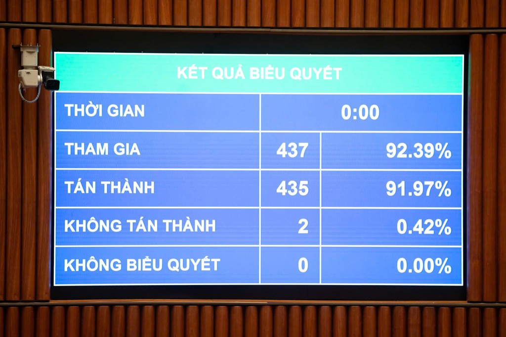 Chiều 10/12/2025, dưới sự chủ trì của Chủ tịch Quốc hội Trần Thanh Mẫn và sự điều hành của Phó Chủ tịch Quốc hội Nguyễn Đức Hải, Quốc hội đã biểu quyết thông qua Luật sửa đổi, bổ sung một số điều của Luật Giá, với 435/437 tổng số đại biểu Quốc hội có mặt tán thành.