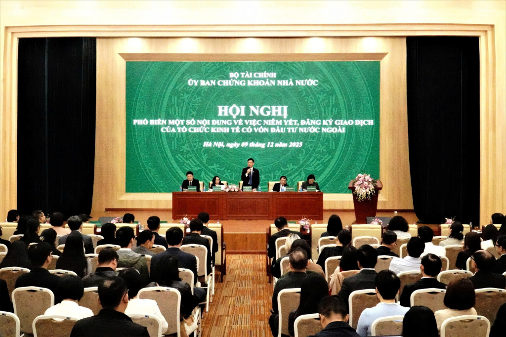 Sáng ngày 9/12, Uỷ ban Chứng khoán Nhà nước (UBCKNN) tổ chức Hội nghị phổ biến các quy định liên quan đến niêm yết và đăng ký giao dịch đối với tổ chức kinh tế có vốn đầu tư nước ngoài (FDI). Sự kiện diễn ra trong bối cảnh thị trường chứng khoán Việt Nam (TTCK) đang đứng trước giai đoạn phát triển mới sau khi được FTSE Russell nâng hạng lên thị trường mới nổi thứ cấp vào ngày 8/10/2025.