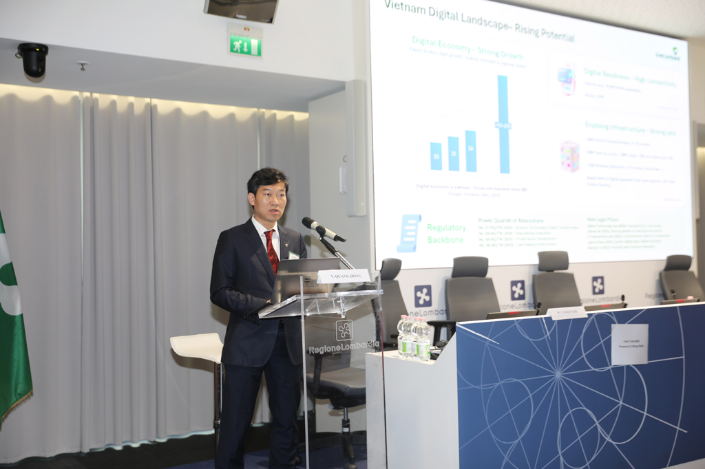 Tại diễn đàn, ông Raffaele Cattaneo – Quốc vụ khanh vùng Lombardy cũng đã có phát biểu chia sẻ về cơ hội và tiềm năng kết nối đầu tư vào Việt Nam đối với các doanh nghiệp Italia. Ông Raffaele Cattaneo cho rằng, hiện nay việc giao thương Việt Nam - Italia đã thuận tiện hơn, khi đã có đường bay thẳng tới Milan, vì thế, cơ hội để các doanh nghiệp, nhà đầu tư hai nước cũng sẽ mở rộng. Quốc vụ khanh vùng Lombardy cũng bày tỏ mong muốn được hợp tác với một số địa phương của Việt Nam để tăng cường giao lưu, đầu tư hiệu quả.