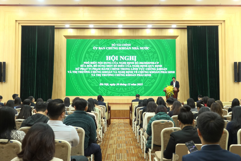 Trên cơ sở tổng hợp ý kiến và hoàn thiện dự thảo theo đúng trình tự, thủ tục pháp luật, ngày 25/11/2025, Chính phủ đã ban hành Nghị định số 306/2025/NĐ-CP. Việc UBCKNN tổ chức Hội nghị phổ biến Nghị định nhằm kịp thời làm rõ các nội dung mới, thống nhất cách hiểu và cách áp dụng trong thực tiễn, qua đó tăng cường công tác tuyên truyền, nâng cao ý thức tuân thủ pháp luật của các tổ chức, cá nhân tham gia thị trường, góp phần bảo đảm hiệu lực, hiệu quả thi hành pháp luật về chứng khoán và thị trường chứng khoán.