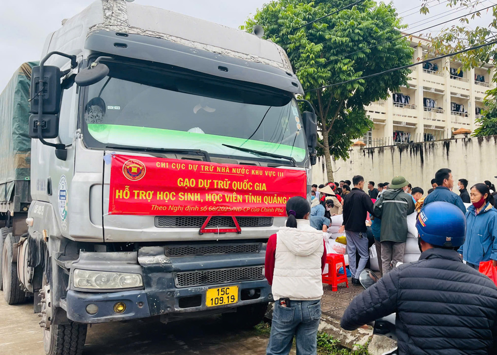Đại diện Chi cục DTNN khu vực III bàn giao gạo dự trữ quốc gia hỗ trợ học sinh tại xã Tiên Yên, tỉnh Quảng Ninh.