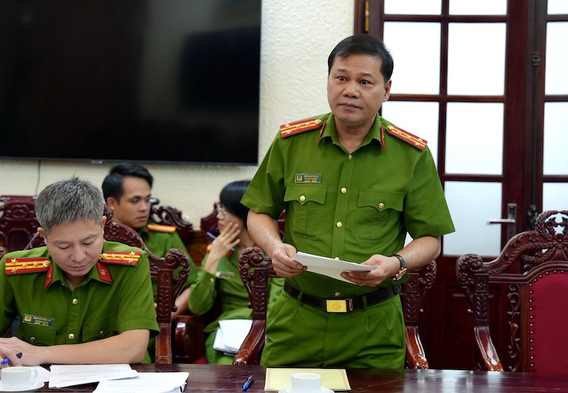 Đại tá Trần Anh Tuấn, Phó Cục trưởng Cục Cảnh sát Phòng chống tội phạm về môi trường (C05) phát biểu tại buổi thẩm định.