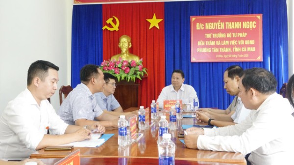 Thứ trưởng Bộ Tư pháp Nguyễn Thanh Ngọc vừa khảo sát mô hình chính quyền hai cấp tại phường Tân Thành, tỉnh Cà Mau, ghi nhận nỗ lực cải cách hành chính và những thách thức trong lĩnh vực tư pháp - hộ tịch.
