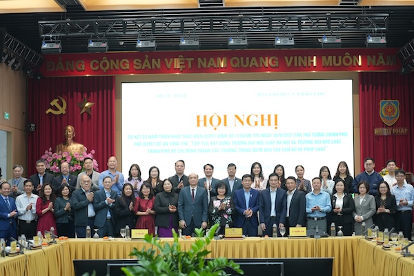 Sáng 30/12, Bộ Tư pháp chủ trì, phối hợp với Bộ Giáo dục và Đào tạo tổ chức Hội nghị sơ kết 03 năm triển khai thực hiện Quyết định số 1156/QĐ-TTg ngày 30/9/2022 của Thủ tướng Chính phủ phê duyệt Đề án tổng thể “Tiếp tục xây dựng Trường Đại học Luật Hà Nội (ĐHLHN) và Trường Đại học Luật thành phố Hồ Chí Minh (ĐHLTPHCM) thành các trường trọng điểm đào tạo cán bộ về pháp luật”.