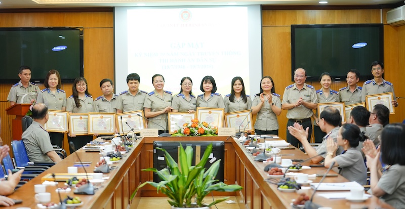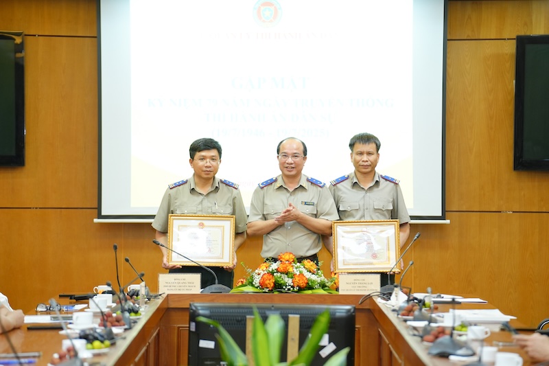 Nhân dịp này, Cục Quản lý THADS đã trao Bằng khen của Bộ trưởng Bộ Tư pháp cho ông Nguyễn Ngọc Vũ, Trưởng ban Tổ chức cán bộ do đã có thành tích xuất sắc trong phong trào thi đua “Ngành Tư pháp chung tay vì người nghèo - Không ai bị bỏ lại phía sau” giai đoạn 2023 - 2025; tặng Giấy khen đối với 17 tập thể và 140 cá nhân đã có thành tích xuất sắc trong đợt thi đua cao điểm lập thành tích xuất sắc chào mừng kỷ niệm 79 năm Ngày Truyền thống THADS (19/7/1946 - 19/7/2025).