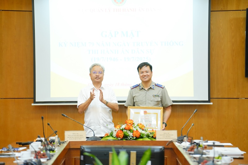 Ngày 18/7, Cục Quản lý Thi hành án dân sự (THADS), Bộ Tư pháp đã tổ chức Chương trình gặp mặt kỷ niệm 79 năm Ngày Truyền thống THADS (19/7/1946 - 19/7/2025). Tham dự Chương trình có ông Nguyễn Quang Thái, Phó Bí thư chuyên trách Đảng ủy Bộ Tư pháp; ông Nguyễn Thắng Lợi, Cục trưởng Cục Quản lý THADS.