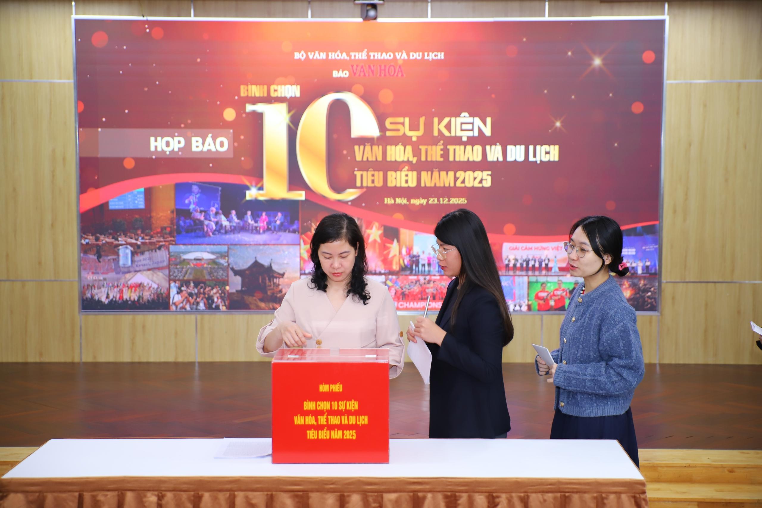 Và tổ chức bình chọn trực tuyến trên Báo Văn hóa điện tử (www.baovanhoa.vn), các nền tảng mạng xã hội của Báo Văn hóa (https://www.facebook.com/baovanhoaa/) và Cổng Thông tin điện tử của Bộ VHTTDL (http://bvhttdl.gov.vn/). Thời gian bình chọn trực tuyến từ 08h00 ngày 23/12/2025 đến 09h00 ngày 25/12/2025.