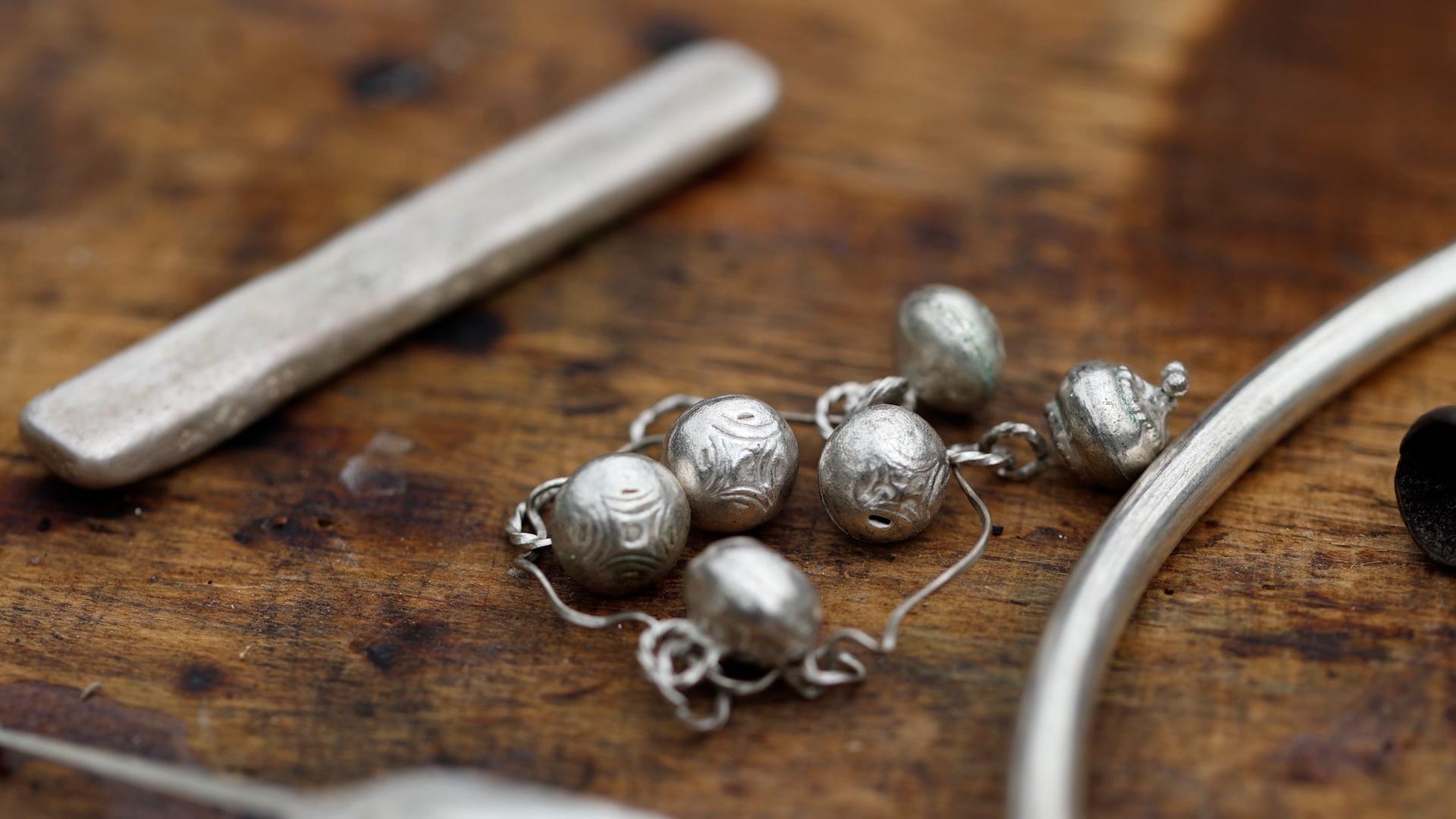 Sản phẩm trang sức bạc được nghệ nhân người Nùng chế tác tinh xảo.