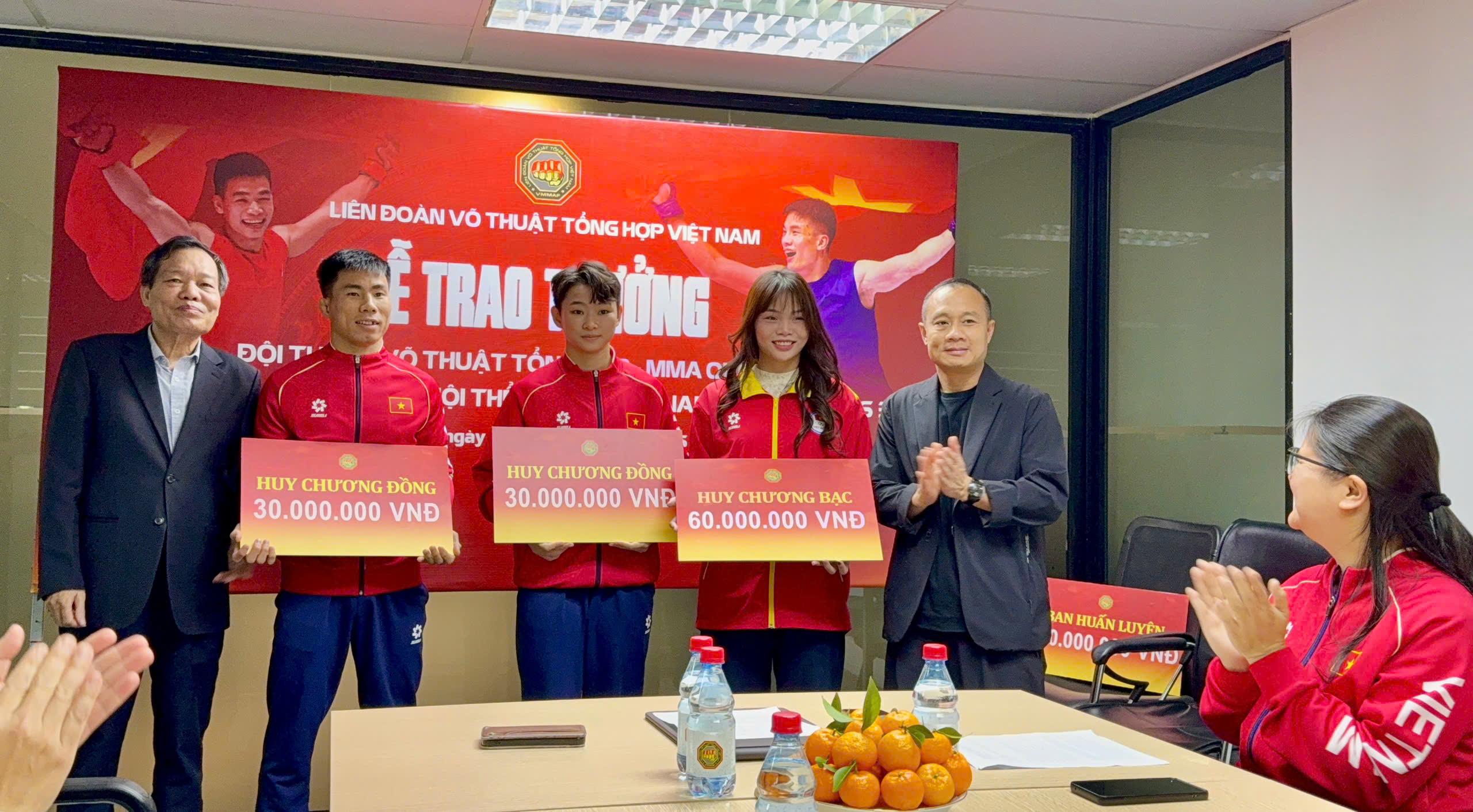 Nhằm kịp thời động viên, khích lệ tinh thần thi đấu, Liên đoàn Võ thuật tổng hợp Việt Nam đã quyết định trao thưởng 200 triệu đồng cho mỗi HCV, 60 triệu đồng cho mỗi HCB và 30 triệu đồng cho mỗi HCĐ. Bên cạnh đó, tập thể lãnh đội và ban huấn luyện đội tuyển MMA Việt Nam cũng được trao thưởng 100 triệu đồng nhằm ghi nhận những đóng góp thầm lặng nhưng vô cùng quan trọng trong hành trình chinh phục thành tích tại SEA Games 33.