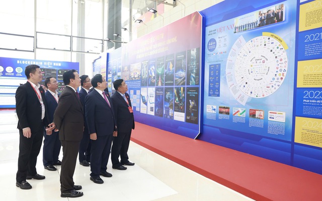 Thủ tướng Chính phủ Phạm Minh Chính và các đại biểu tham quan Triển lãm thành tựu khoa học công nghệ, đổi mới sáng tạo và chuyển đổi số tại Trung tâm Hội nghị Quốc gia (Hà Nội).
