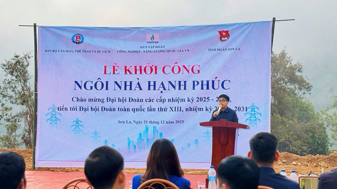 Đoàn Thanh niên Bộ Văn hóa, Thể thao và Du lịch phối hợp với Đoàn Thanh niên Tập đoàn Công nghiệp – Năng lượng Quốc gia Việt Nam khởi công xây dựng "Ngôi nhà hạnh phúc" cho gia đình em Giàng Vân Hồ, Bản Pha Dảo, xã Mường Sại.