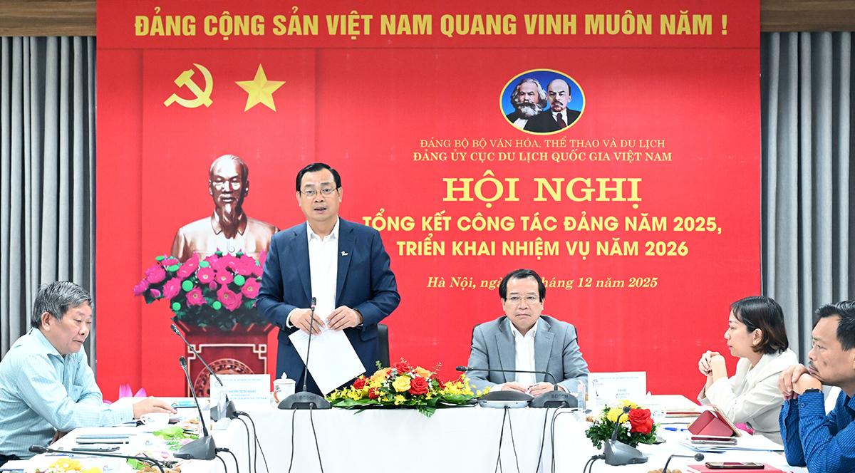 Phát biểu chỉ đạo tại hội nghị, đồng chí Nguyễn Tuấn Linh, Phó Bí thư chuyên trách Đảng ủy Bộ VHTTDL ghi nhận và đánh giá cao những thành tựu Đảng bộ Cục Du lịch Quốc gia Việt Nam đạt được trong năm 2025. Bước sang năm 2026, Đảng ủy Cục cần đẩy mạnh công tác tuyên truyền, quán triệt các văn bản, nghị quyết của Trung ương, đặc biệt là Nghị quyết Đại hội Đảng lần thứ XIV và các nghị quyết mới về phát triển văn hóa.