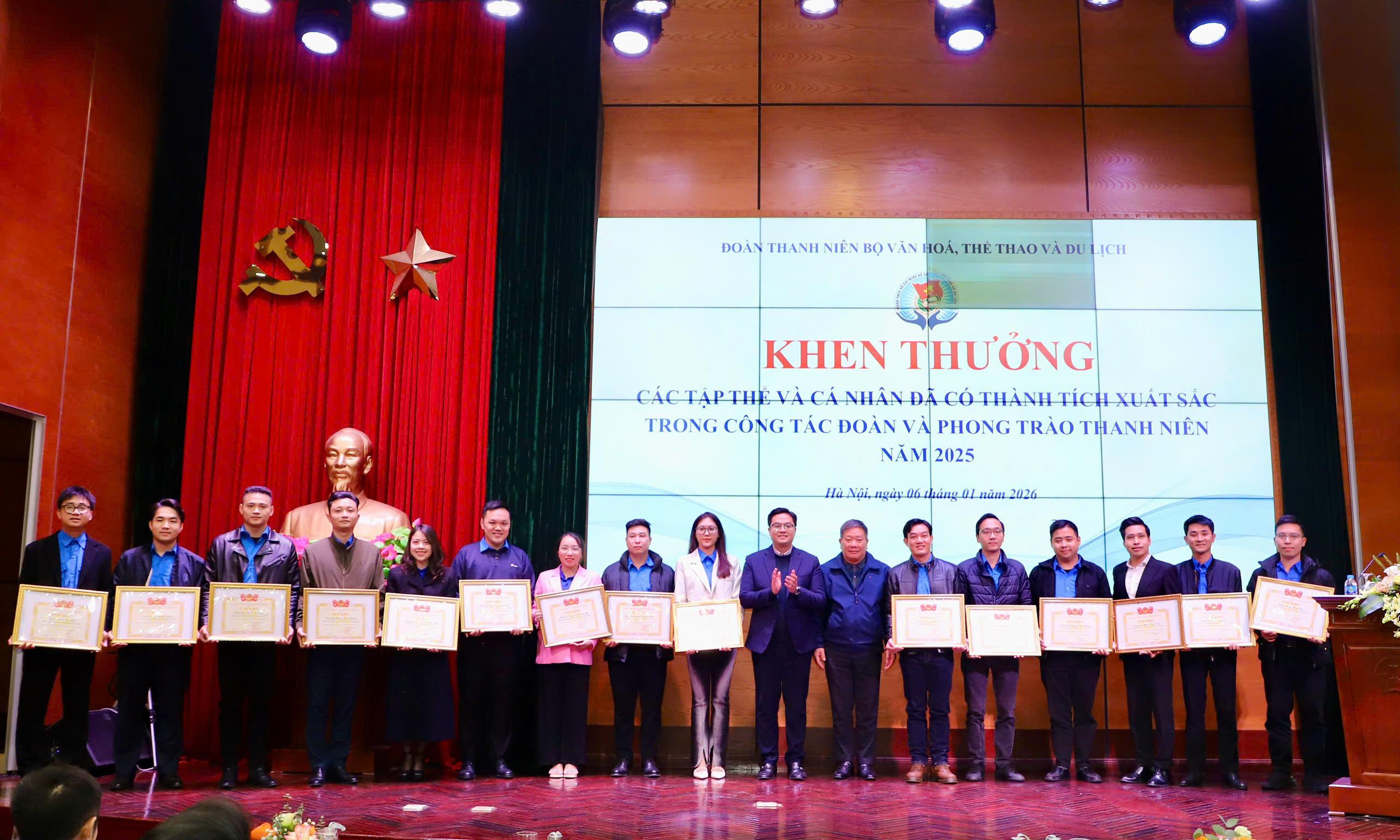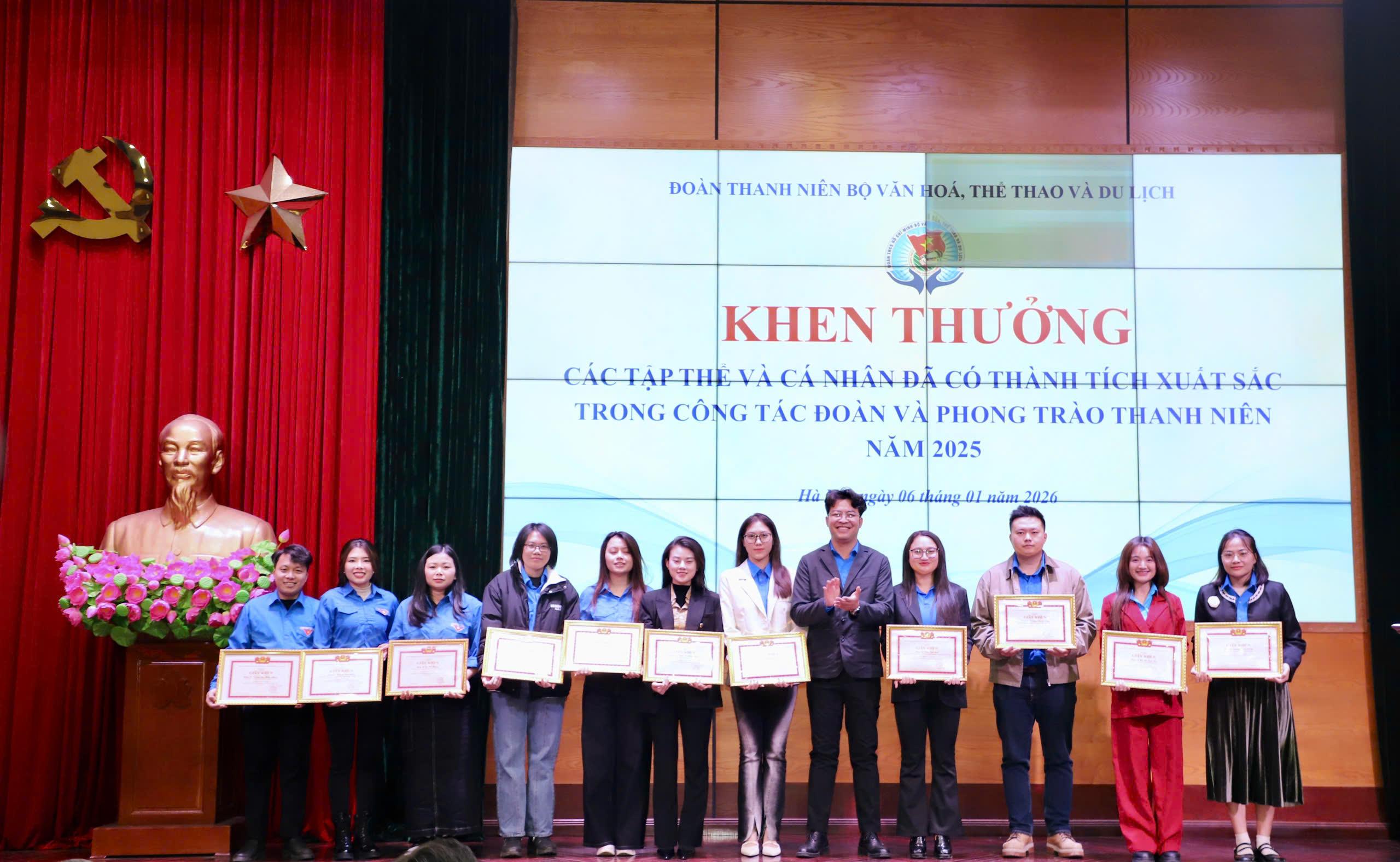 Với những đóng góp và nỗ lực của tập thể, Đoàn Thanh niên Bộ VHTTDL vinh dự là một trong 10 đơn vị được trao Cờ thi đua xuất sắc công tác Đoàn và phong trào thanh niên năm 2025 của Đoàn Thanh niên Chính phủ. Nhiều tập thể, cá nhân trực thuộc Đoàn Bộ cũng được khen thưởng vì có thành tích nổi bật trong năm./.
