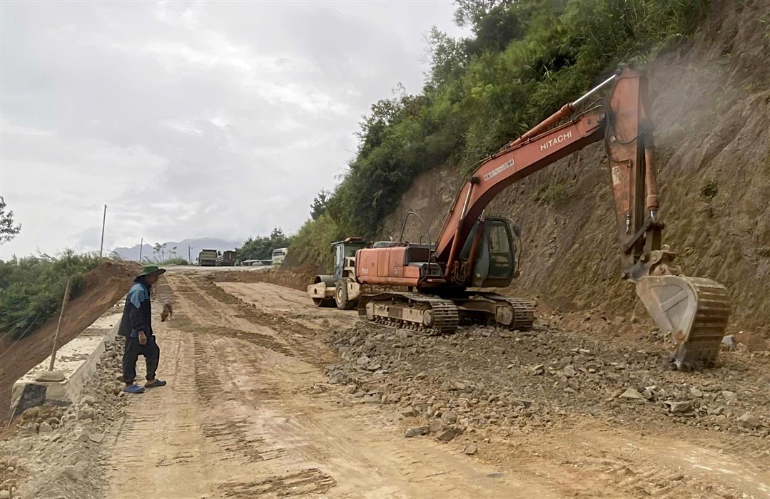 Tuyến đường nối Lai Châu với cao tốc Nội Bài - Lào Cai qua xã Mường Than đang được đẩy nhanh thi công.