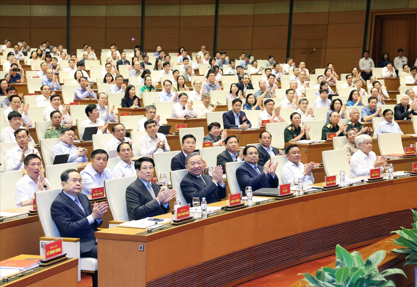 Tổng Bí thư Tô Lâm và các đại biểu tham dự Hội nghị tại điểm cầu chính Phòng họp Diên Hồng, Nhà Quốc hội, Hà Nội. Ảnh: Thống Nhất – TTXVN