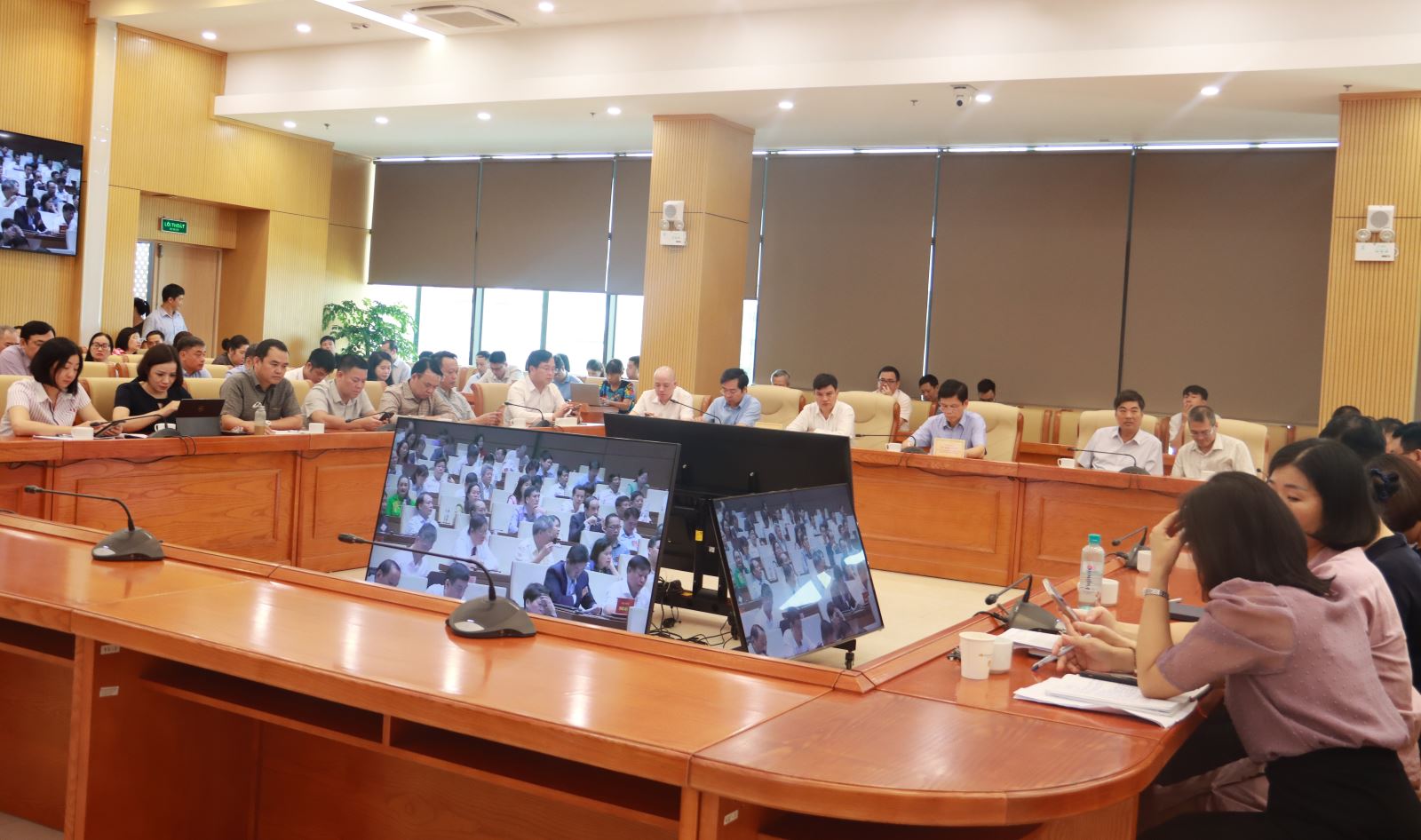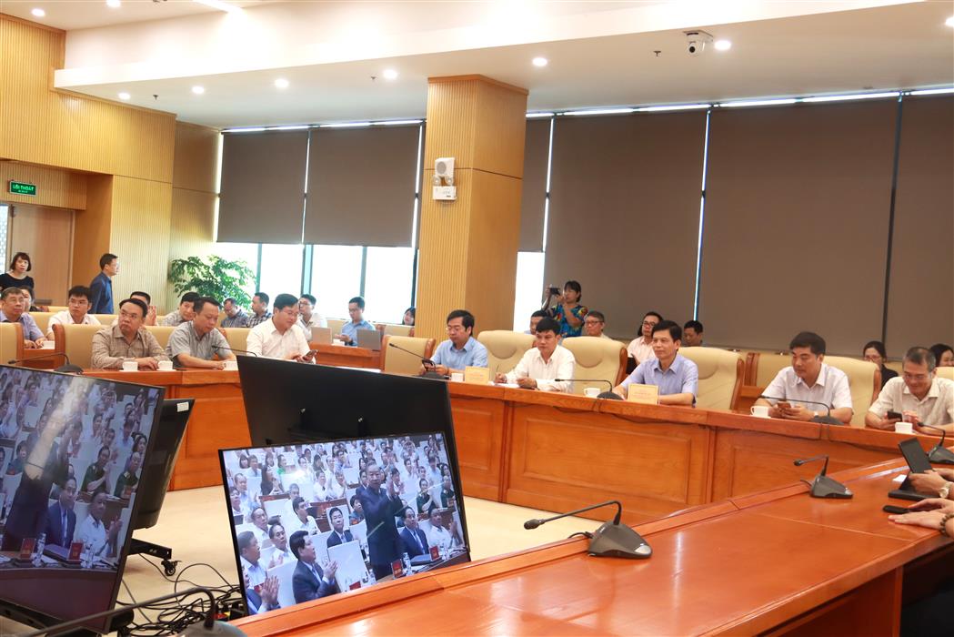 Các đại biểu tham dự Hội nghị tại điểm cầu Đảng ủy Bộ Xây dựng tại 37 Lê Đại Hành. Ảnh: Trần Đình Hà