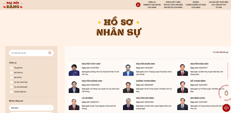 Hồ sơ các Ủy viên Ban Chấp hành Trung ương Đảng được đăng tải trên trang thông tin