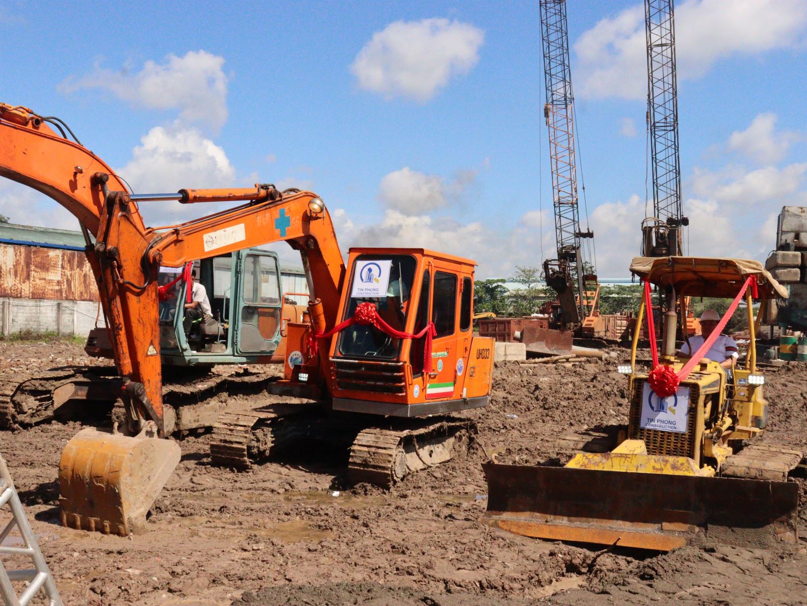 Phương tiện, máy móc chuẩn bị thi công dự án Khu nhà ở xã hội Mỹ Hạnh