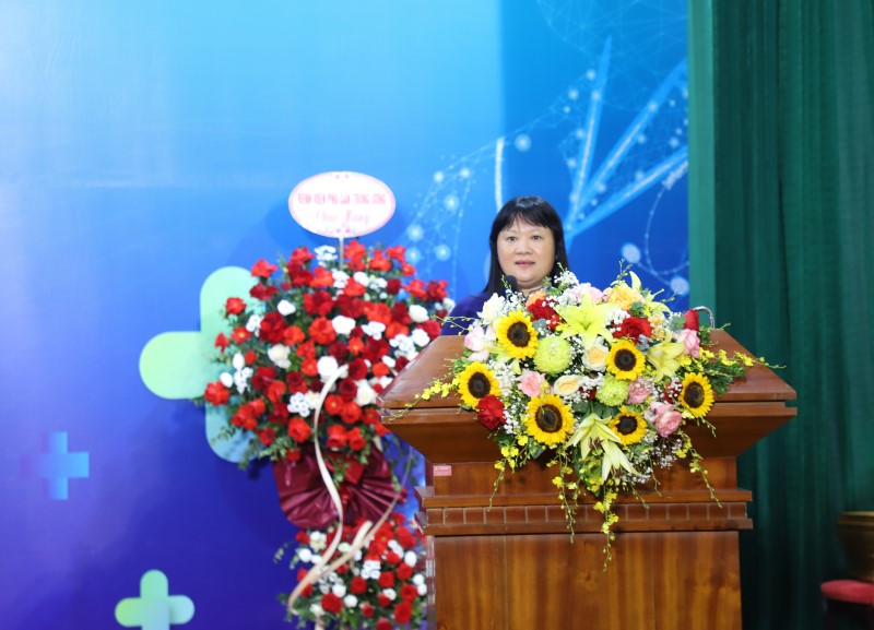 Bà Phạm Thanh Bình, Chủ tịch Công đoàn Y tế Việt Nam phát biểu khai mạc