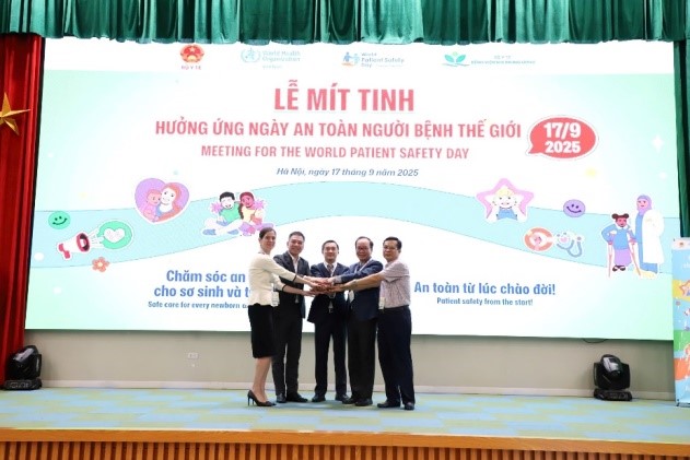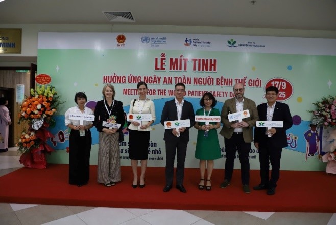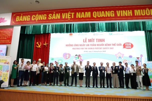 Ngày 17/9/2025, tại Bệnh viện Nhi Trung ương, Bộ Y tế phối hợp với Tổ chức Y tế Thế giới (WHO) tổ chức Lễ mít tinh hưởng ứng Ngày An toàn Người bệnh Thế giới năm 2025. Tham dự buổi lễ có GS.TS. Trần Văn Thuấn, Thứ trưởng Bộ Y tế, Chủ tịch Hội đồng Y khoa Quốc gia, bà Jennifer Horton, Phó Trưởng đại diện WHO tại Việt Nam; bà Erin Maura Kenny, Trưởng nhóm Hệ thống Y tế và Kiểm soát bệnh tật WHO tại Việt Nam; đại diện lãnh đạo một số Cục, Vụ thuộc Bộ Y tế cùng các đơn vị liên quan.