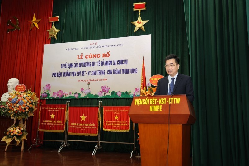 Sáng 16/10/2025, PGS.TS Nguyễn Thị Liên Hương, Thứ trưởng Bộ Y tế dự và trao Quyết định bổ nhiệm lại cán bộ tại Viện Sốt rét - Ký sinh trùng - Côn trùng Trung ương đối với Phó Viện trưởng Trần Quang Phục. Tham dự buổi lễ bổ nhiệm lại cán bộ còn có đại diện các Cục, Vụ, Văn phòng Bộ Y tế, các đơn vị trực thuộc Bộ Y tế, cùng tập thể lãnh đạo, cán bộ, người lao động Viện Viện Sốt rét - Ký sinh trùng - Côn trùng Trung ương.