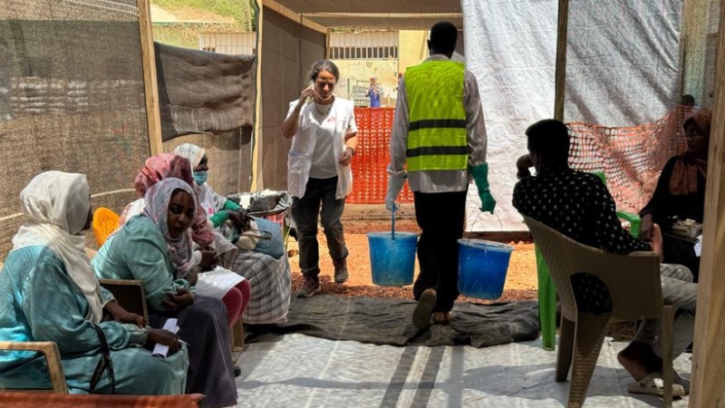 Các nhân viên y tế làm việc tại một trung tâm điều trị bệnh tả, ở Kosti, bang White Nile, Sudan. (Ảnh: Tân Hoa xã)