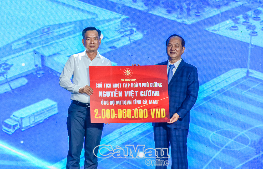Ông Nguyễn Việt Cường, Chủ tịch HĐQT Tập đoàn Phú Cường, ủng hộ Uỷ ban MTTQ Việt Nam tỉnh Cà Mau 2 tỷ đồng.