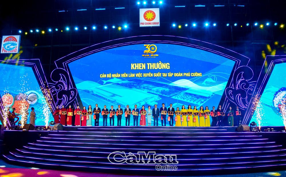 Dịp này, Chủ tịch UBND tỉnh tặng bằng khen cho Công ty TNHH Phú Cường - Kiên Cường và cá nhân ông Lê Triệu Vĩnh, Giám đốc công ty. Ông Nguyễn Việt Cường, Chủ tịch HĐQT Tập đoàn, ủng hộ 2 tỷ đồng cho Uỷ ban MTTQ Việt Nam tỉnh Cà Mau; đồng thời trao thưởng cho 25 cán bộ, nhân viên có thời gian gắn bó 20-30 năm; tặng Kỷ niệm chương cho 6 doanh nghiệp cung ứng sản lượng cao và 12 doanh nghiệp là khách hàng hợp tác lâu năm.