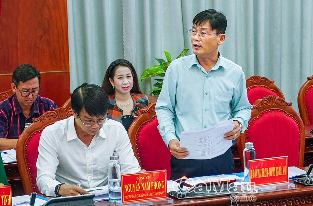 Ông Nguyễn Quốc Danh, Phó Tổng Biên tập Báo và Phát thanh, Truyền hình Cà Mau đóng góp ý kiến về xây dựng nội dung và thời lượng các phóng sự dự kiến trong chương trình khai mạc và bế mạc.