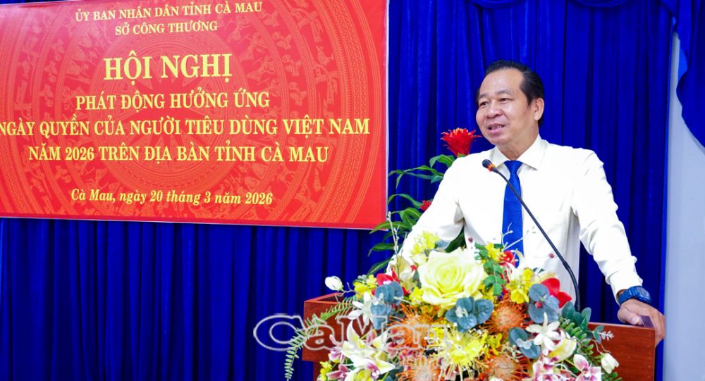 Phó Giám đốc Sở Công thương Cà Mau Dương Vũ Nam phát động hưởng ứng Ngày Quyền của Người tiêu dùng Việt Nam năm 2026.