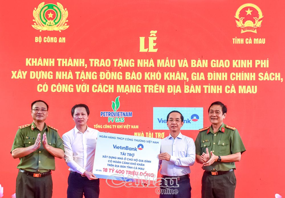 Đồng hành cùng tỉnh Cà Mau trong công tác đền ơn đáp nghĩa và an sinh xã hội, chiều 19/3, tại ấp Thới Bình, xã Thới Bình, Bộ Công an tổ chức bàn giao nhà mẫu và trao kinh phí xây dựng 500 căn nhà cho gia đình chính sách, hộ dân có hoàn cảnh khó khăn trên địa bàn tỉnh Cà Mau, với tổng kinh phí 40 tỷ đồng.