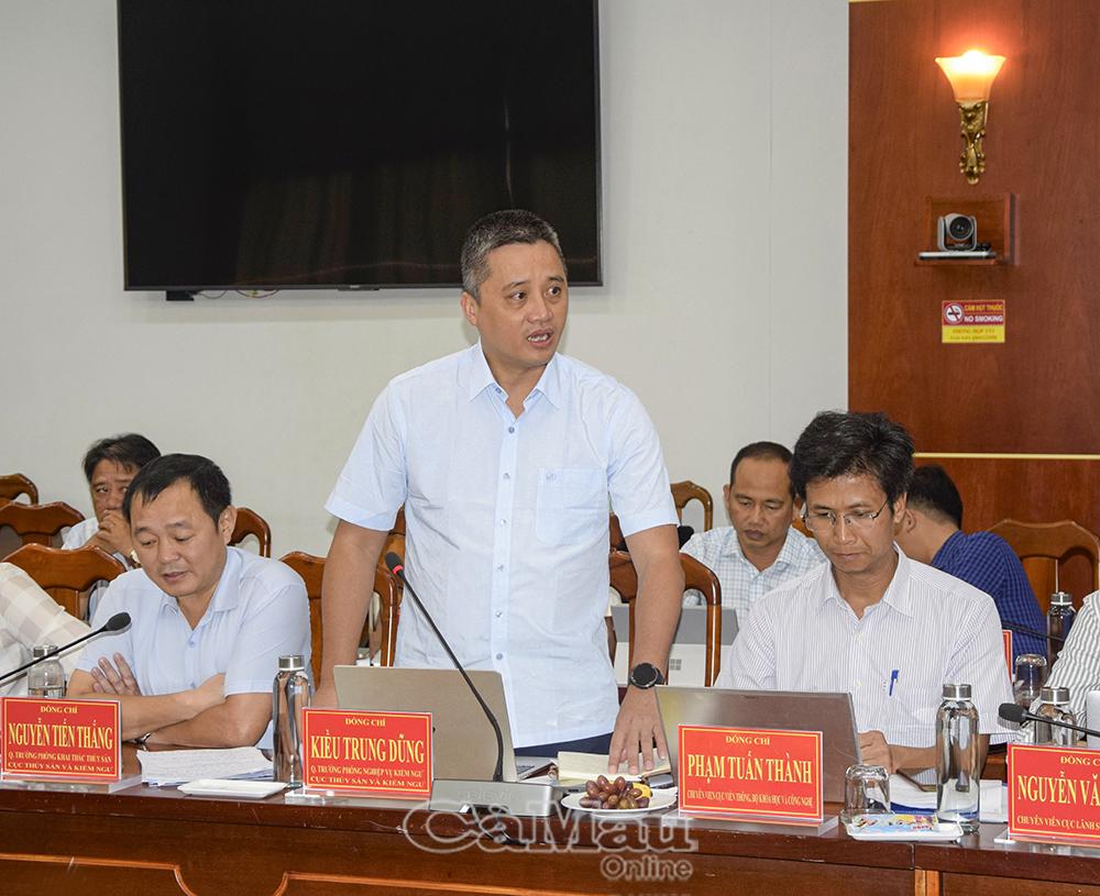 Đồng chí Kiều Trung Dũng, Quyền Trưởng phòng Nghiệp vụ kiểm ngư, Cục Thuỷ sản và Kiểm ngư, báo cáo tại buổi làm việc.