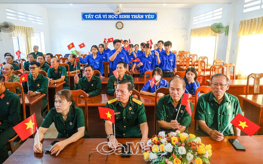 Đông đảo bạn trẻ, đoàn viên thanh niên và các cô chú cựu chiến binh tập trung tại hội trường Trường THCS Nguyễn Thị Minh Khai (Phường 9, TP Cà Mau) từ rất sớm để chờ xem lễ diễu binh qua sóng truyền hình. Ảnh: Hữu Nghĩa