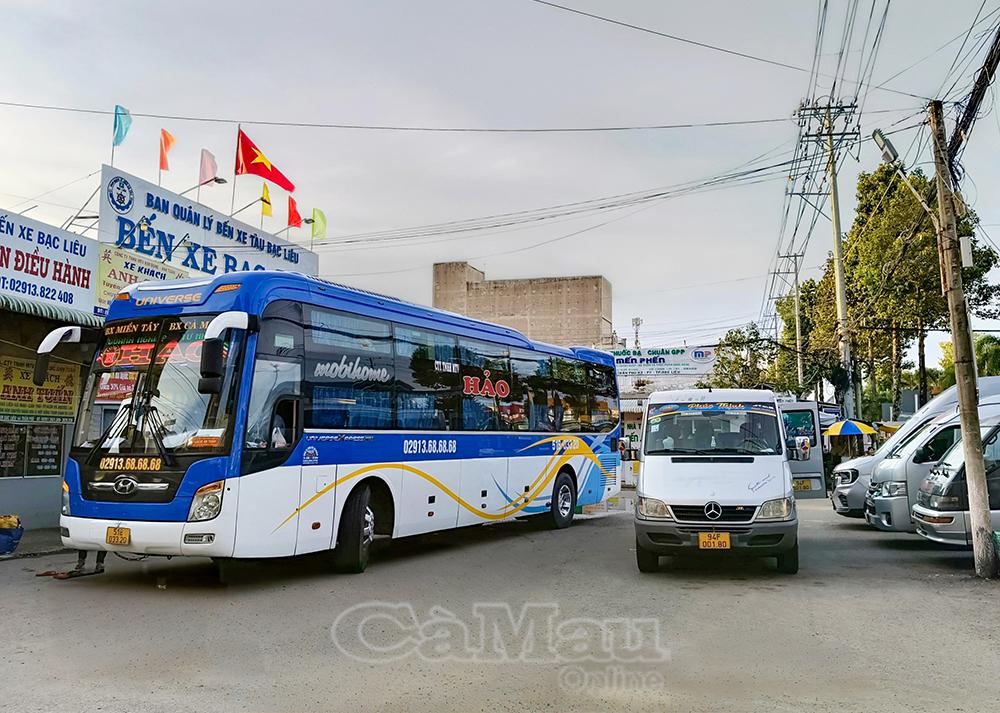Các phương tiện chuẩn bị xuất bến tại Bến xe Bạc Liêu, phường Bạc Liêu.