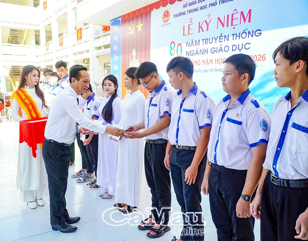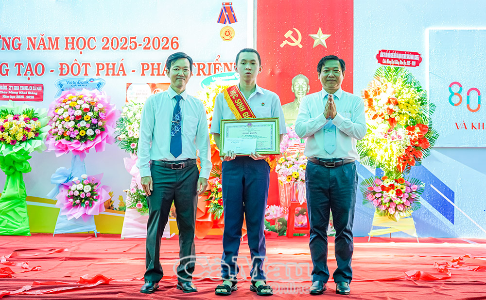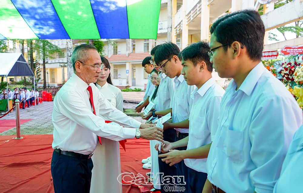 Tại lễ khai giảng, Quỹ Khuyến học Võ Văn Kiệt phối hợp với Sở GD&ĐT trao 20 suất học bổng (1 triệu đồng/suất) cho học sinh khó khăn. Đặc biệt, đồng chí Lữ Văn Hùng trao tặng 10 suất học bổng cho học sinh vượt khó đạt thành tích cao; Công ty Cổ phần Chế biến và Dịch vụ Thuỷ sản Cà Mau tặng 10 xe đạp cho học sinh nghèo. Nhà trường cũng trao bằng khen, phần thưởng cho học sinh đạt giải cao tại kỳ thi Học sinh giỏi quốc gia, Olympic 30/4, Tin học trẻ cấp tỉnh và khu vực.