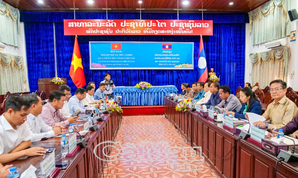 Tại hội đàm, lãnh đạo tỉnh Bô Ly Khăm Xay mong muốn tỉnh Cà Mau hỗ trợ xây dựng mô hình trồng lúa kết hợp nuôi tôm, hỗ trợ kỹ thuật nuôi tôm, chia sẻ kinh nghiệm về chăn nuôi và lai tạo giống cây trồng.