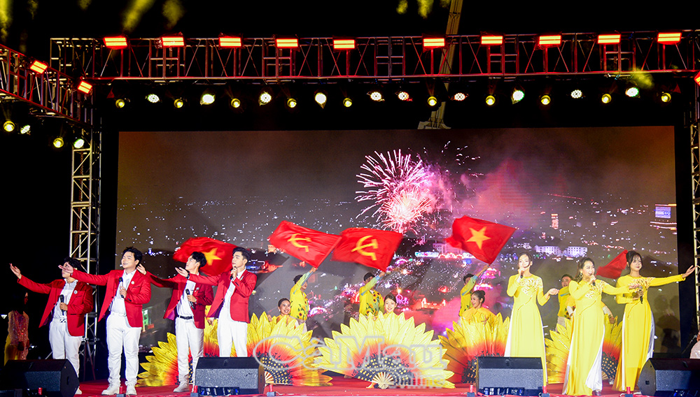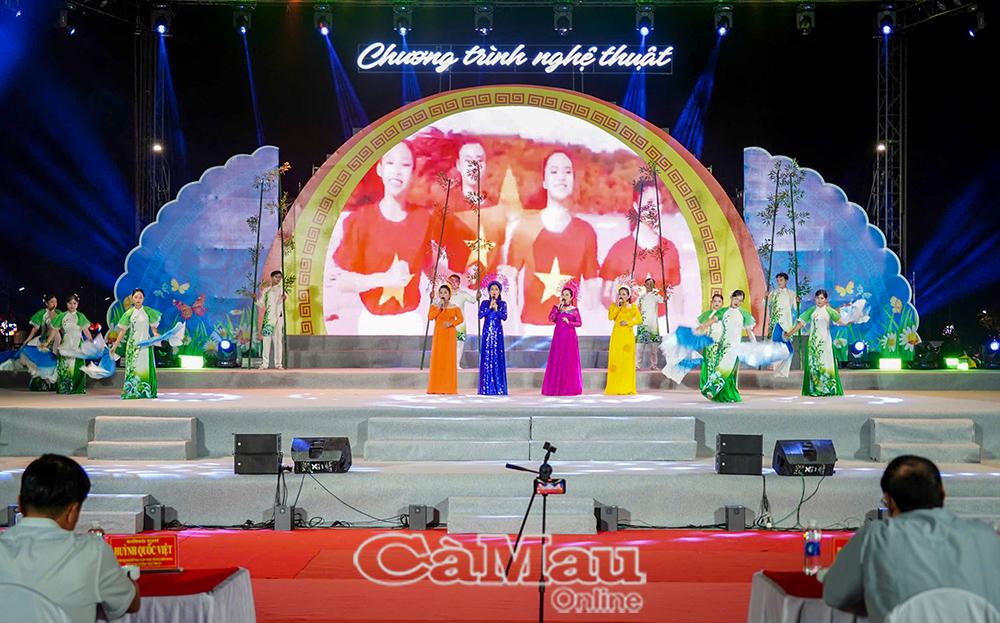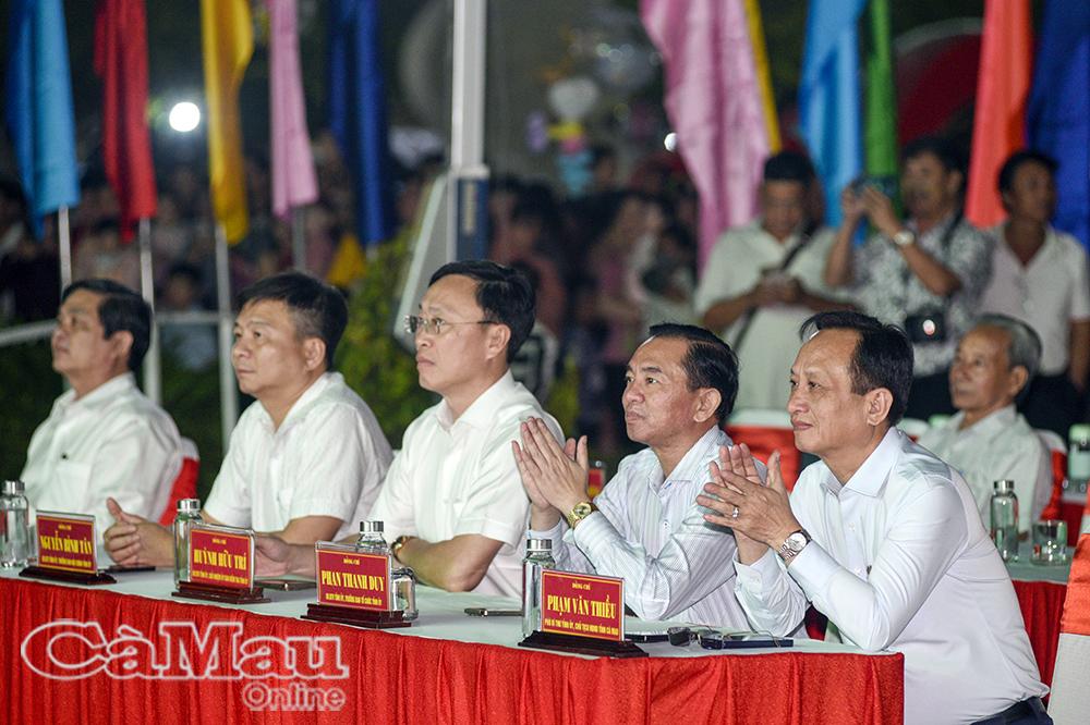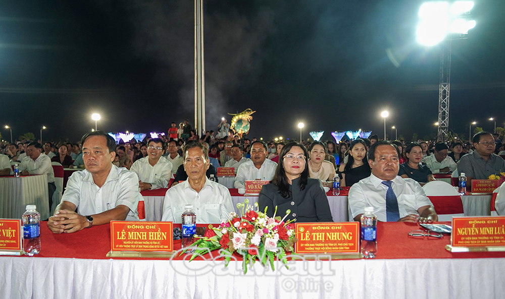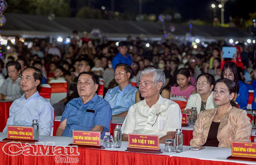 * Chương trình nghệ thuật tại Quảng trường Phan Ngọc Hiển có sự tham dự của các đồng chí: Huỳnh Quốc Việt, Uỷ viên Dự khuyết Ban Chấp hành Trung ương Đảng, Phó Bí thư Thường trực Tỉnh uỷ; Phạm Thạnh Trị, nguyên Phó Bí thư Tỉnh uỷ, nguyên Chủ tịch UBND tỉnh; Lê Thị Nhung, Uỷ viên Ban Thường vụ Tỉnh uỷ, Phó Chủ tịch Thường trực HĐND tỉnh; Nguyễn Minh Luân, Uỷ viên Ban Thường vụ Tỉnh uỷ, Phó Chủ tịch UBND tỉnh.