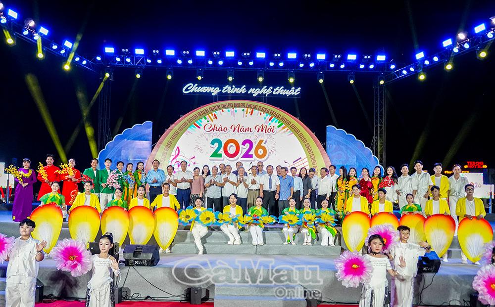 * Tham dự Chương trình nghệ thuật chào năm mới 2026 tại Quảng trường Hùng Vương có đồng chí Phạm Văn Thiều, Phó Bí thư Tỉnh uỷ, Chủ tịch HĐND tỉnh; đồng chí Hồ Thanh Thuỷ, Phó Bí thư Tỉnh uỷ, Chủ tịch Uỷ ban MTTQ Việt Nam tỉnh Cà Mau; các đồng chí lãnh đạo tỉnh, cùng đông đảo cán bộ, chiến sĩ và Nhân dân.