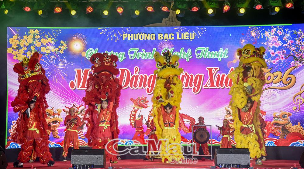 Chương trình nghệ thuật được dàn dựng công phu, chia làm 2 phần: “Tuổi xuân dâng Đảng” và “Rạng rỡ Cà Mau”, quy tụ hơn 100 diễn viên, biểu diễn 10 tiết mục nghệ thuật đa dạng thể loại như ca múa hiện đại, tân cổ giao duyên…