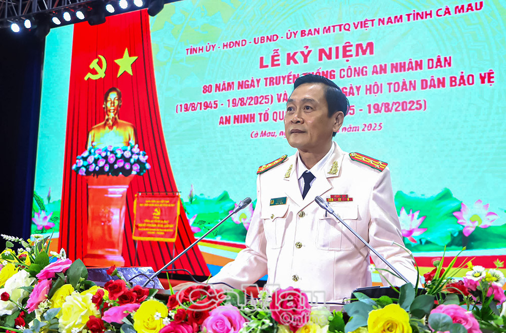Tại buổi lễ, các đại biểu cũng được ôn lại truyền thống lực lượng CAND Việt Nam nói chung, Công an tỉnh Cà Mau nói riêng qua các thước phim tư liệu phản ánh chặng đường 80 năm xây dựng, chiến đấu và trưởng thành. Là một bộ phận của CAND Việt Nam, chỉ 2 ngày sau khi giành được chính quyền, Công an Cà Mau được Tỉnh uỷ, Uỷ ban giải phóng tỉnh quyết định thành lập vào ngày 25/8/1945 với tên gọi “Quốc gia tự vệ cuộc”. Những ngày đầu mới thành lập, lực lượng còn nhỏ bé, nhiệm vụ nặng nề, lại phải đối phó với những kẻ thù sừng sỏ và nguy hiểm, nhưng lực lượng Công an Cà Mau đã lập nhiều chiến công xuất sắc trong các cuộc chiến khốc liệt chống thực dân Pháp và đế quốc Mỹ.