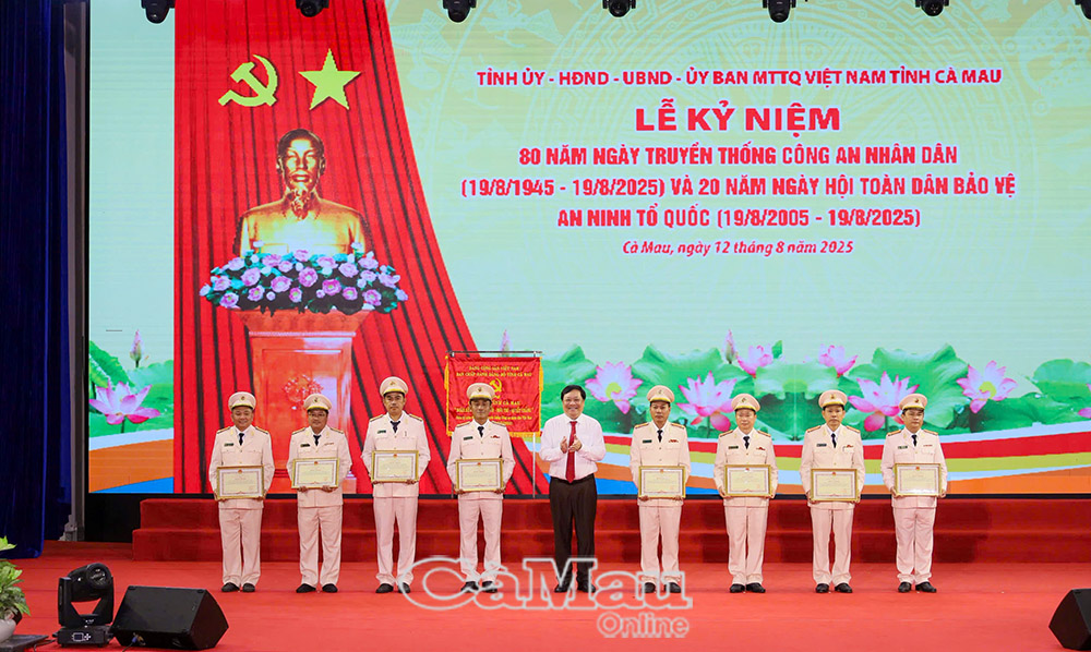 Dịp này, Chủ tịch UBND tỉnh Cà Mau tặng Bằng khen cho 8 tập thể, 11 cá nhân trong lực lượng Công an tỉnh có thành tích tiêu biểu, xuất sắc trong công tác tổ chức, triển khai thực hiện các hoạt động kỷ niệm 80 năm Ngày truyền thống CAND Việt Nam và 20 năm Ngày hội toàn dân bảo vệ an ninh Tổ quốc trên địa bàn tỉnh.