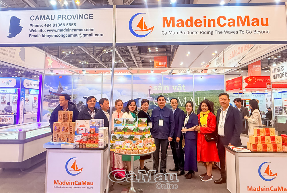 Trong hơn 1.300 gian hàng tại hội chợ, gian hàng của Cà Mau nổi bật với thông điệp về sự chủ động hội nhập, tinh thần hợp tác và phát triển bền vững, giới thiệu các mặt hàng thuỷ sản sinh thái, chế biến sâu, đáp ứng nhu cầu đa dạng của thị trường quốc tế.