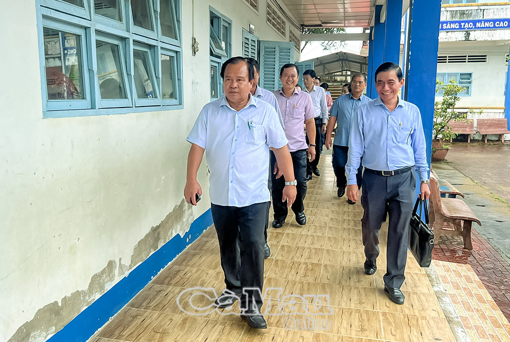 Phó Chủ tịch UBND tỉnh Nguyễn Minh Luân kiểm tra thực tế công tác chuẩn bị cho lễ khai giảng tại một số trường học trên địa bàn tỉnh, ngày 29/8. Ảnh: TRÚC LINH