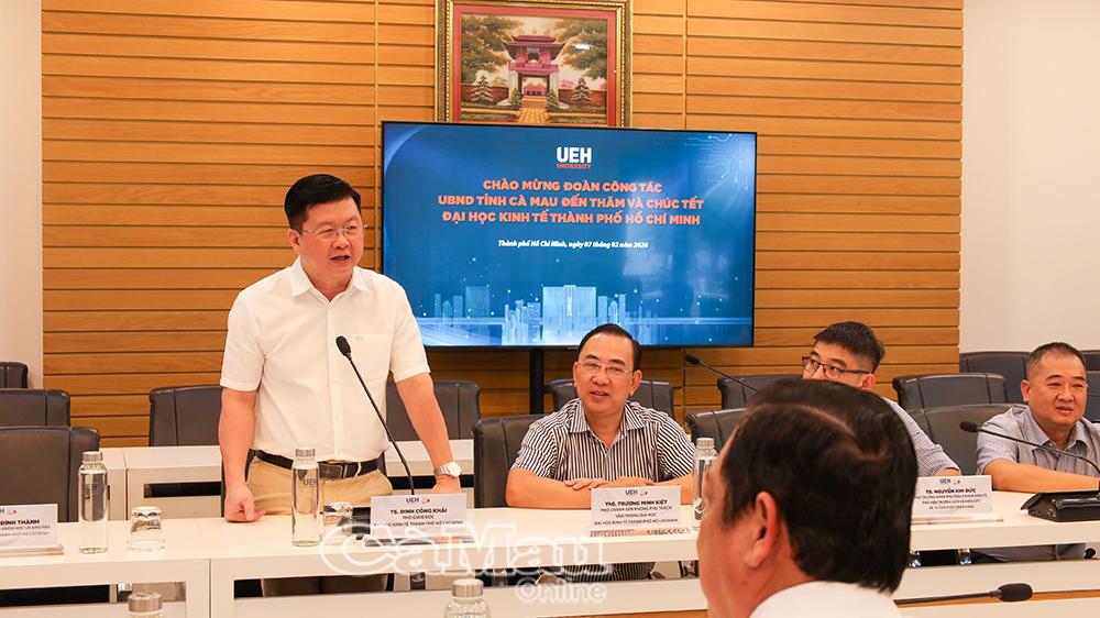 Phát biểu tại buổi gặp gỡ, Tiến sĩ Đinh Công Khải, Phó Giám đốc Trường Đại học Kinh tế TP Hồ Chí Minh, bày tỏ trân trọng tình cảm và sự quan tâm của lãnh đạo tỉnh Cà Mau dành cho nhà trường.
