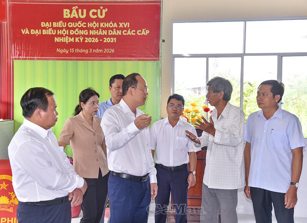 Phó Chủ tịch UBND tỉnh Nguyễn Minh Luân trao đổi và có những chỉ đạo đối với Tổ bầu cử số 5, phường Bạc Liêu về những vấn đề cần lưu ý diễn ra trong ngày bầu cử.