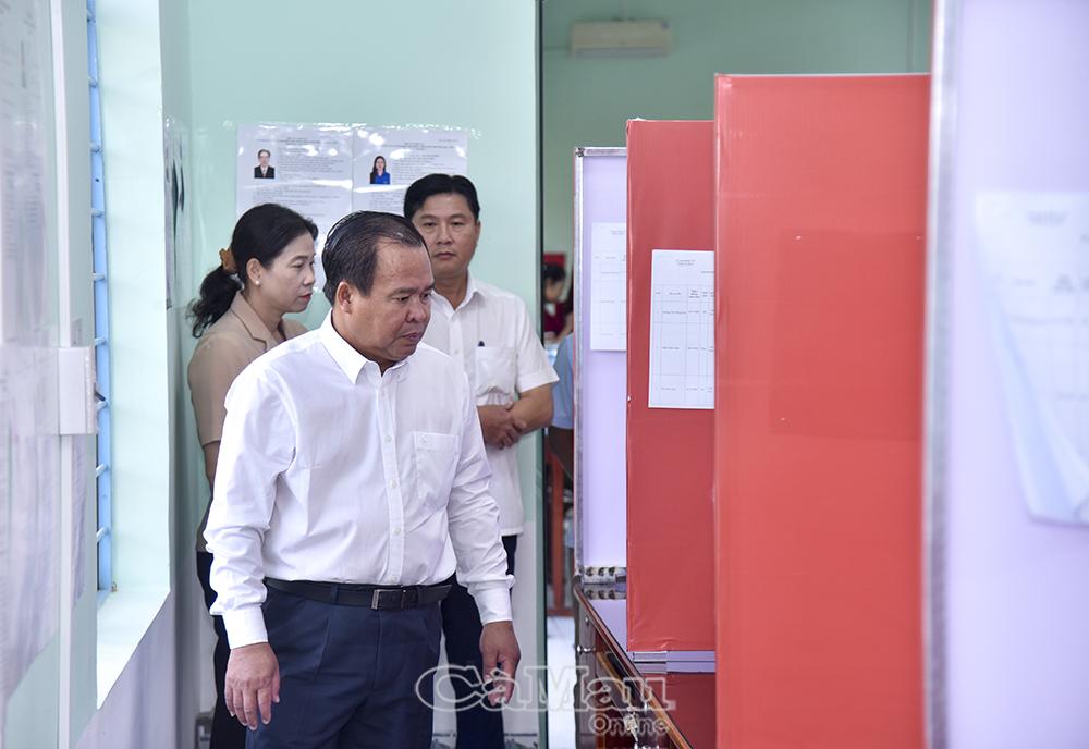 Phó Chủ tịch UBND tỉnh Nguyễn Minh Luân khảo sát điểm bố trí phòng kín Khu vực bỏ phiếu số 5.
