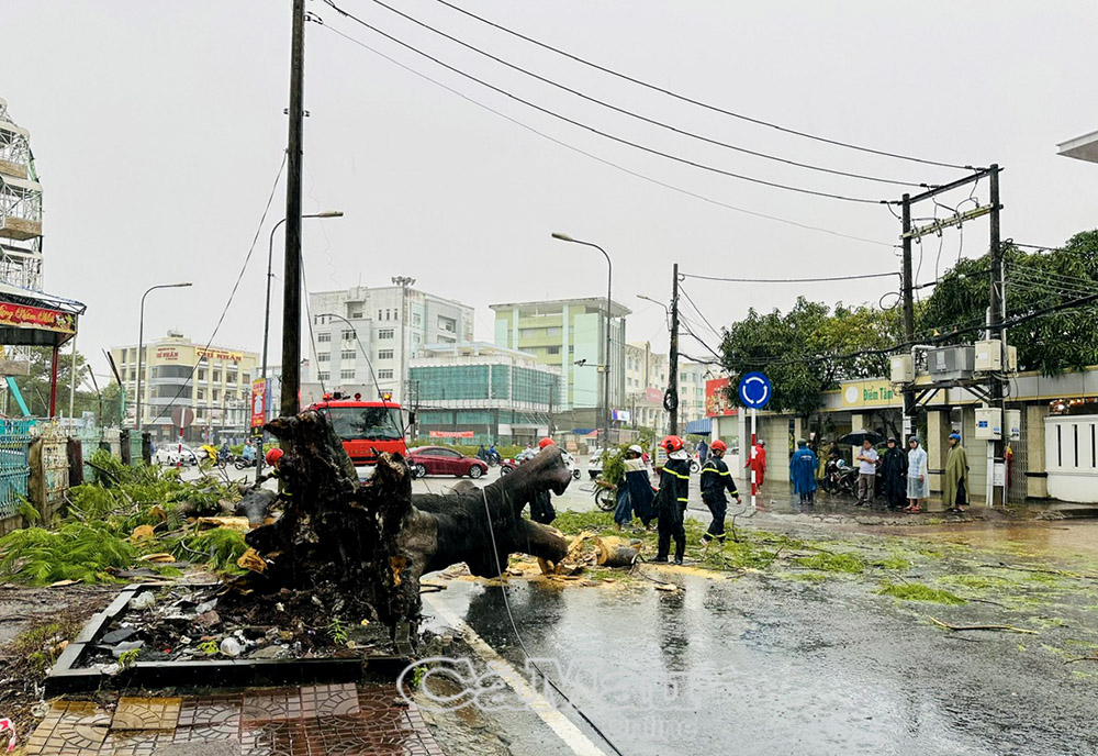 Tại hiện trường, gốc cây bật khỏi mặt đường, giao thông khu vực tạm thời bị chia cắt. Vụ việc xảy ra khoảng hơn 7 giờ sáng, khi trời đang mưa lớn, gió mạnh. Lực lượng chức năng phường Tân Thành đã nhanh chóng có mặt, đưa nạn nhân đi cấp cứu và khắc phục sự cố.
