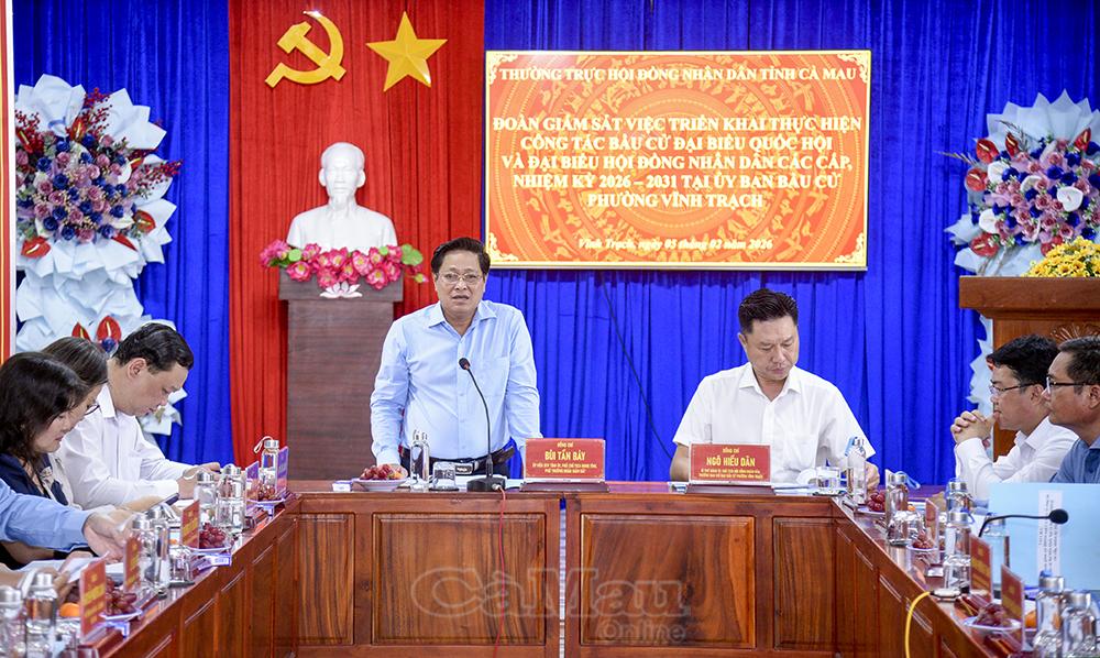 Phó Chủ tịch HĐND tỉnh Bùi Tấn Bảy đánh giá cao sự nỗ lực, tinh thần trách nhiệm và quyết tâm chính trị của phường Vĩnh Trạch trong công tác chuẩn bị bầu cử. Đồng chí lưu ý, từ nay đến ngày bầu cử, địa phương phải thường xuyên cập nhật đầy đủ danh sách cử tri, quan tâm bố trí cơ sở vật chất tại các điểm bầu cử; phân công lực lượng bảo vệ danh sách và tiểu sử người ứng cử.