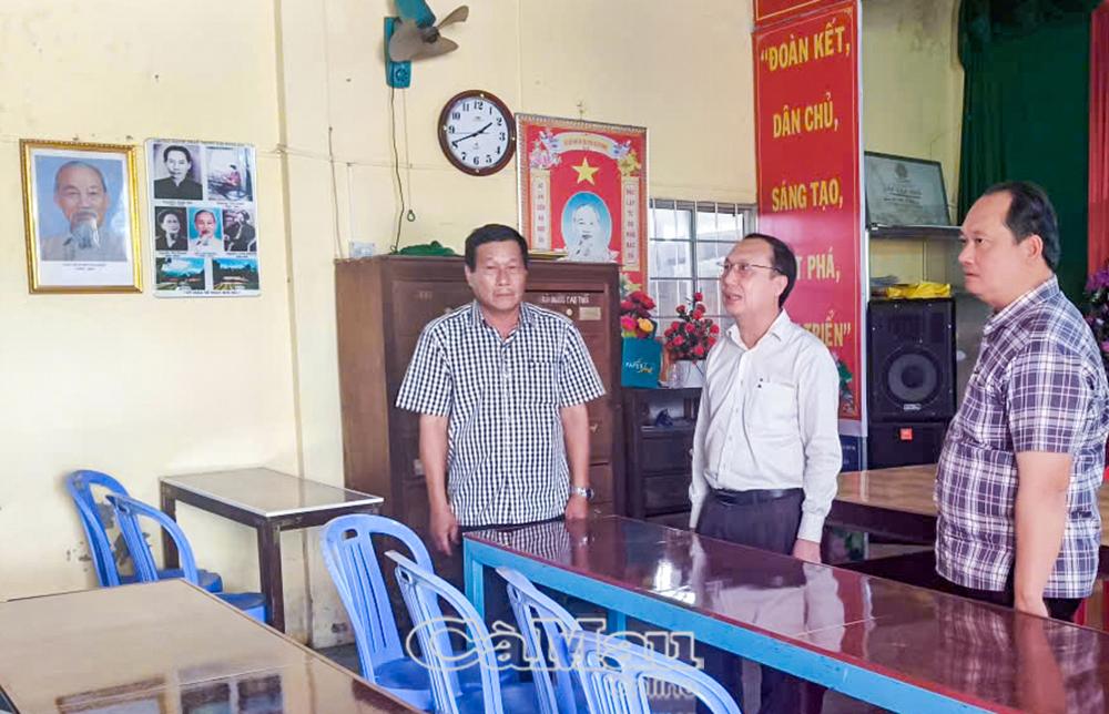 Phó Chủ tịch HĐND tỉnh Phan Hoàng Vũ (giữa) kiểm tra thực tế khu vực, địa điểm tổ chức bầu cử tại xã Hưng Mỹ.
